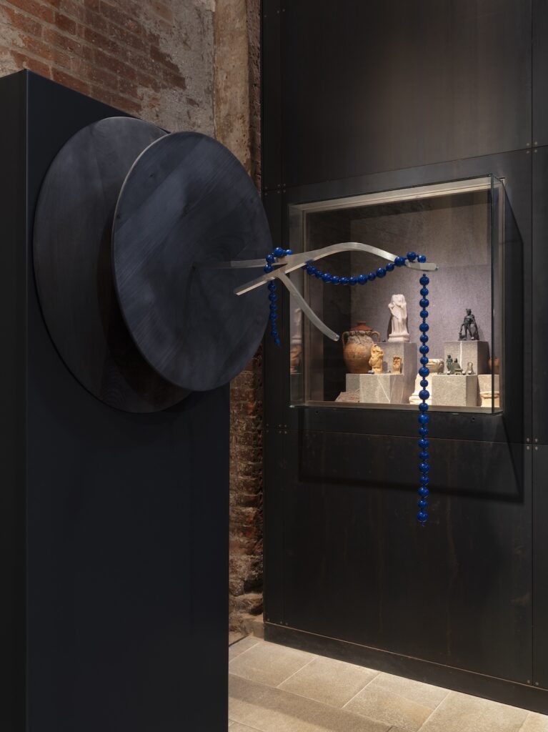 Il primo prende corpo all’interno del Museo Archeologico di San Lorenzo, dove viene presentata la scultura Preghiera, realizzata appositamente per questa edizione della rassegna. L’opera si configura come un invito alla sospensione e all’ascolto interiore: il titolo suggerisce fin da subito una dimensione contemplativa, che si traduce in una forma essenziale e in un uso del materiale — il legno — capace di evocare intimità e raccoglimento. Inserita in uno spazio che custodisce reperti e tracce del passato, Preghiera attiva un confronto silenzioso tra spiritualità e memoria archeologica, trasformando l’opera in un luogo mentale che amplifica il senso del tempo e della ritualità.